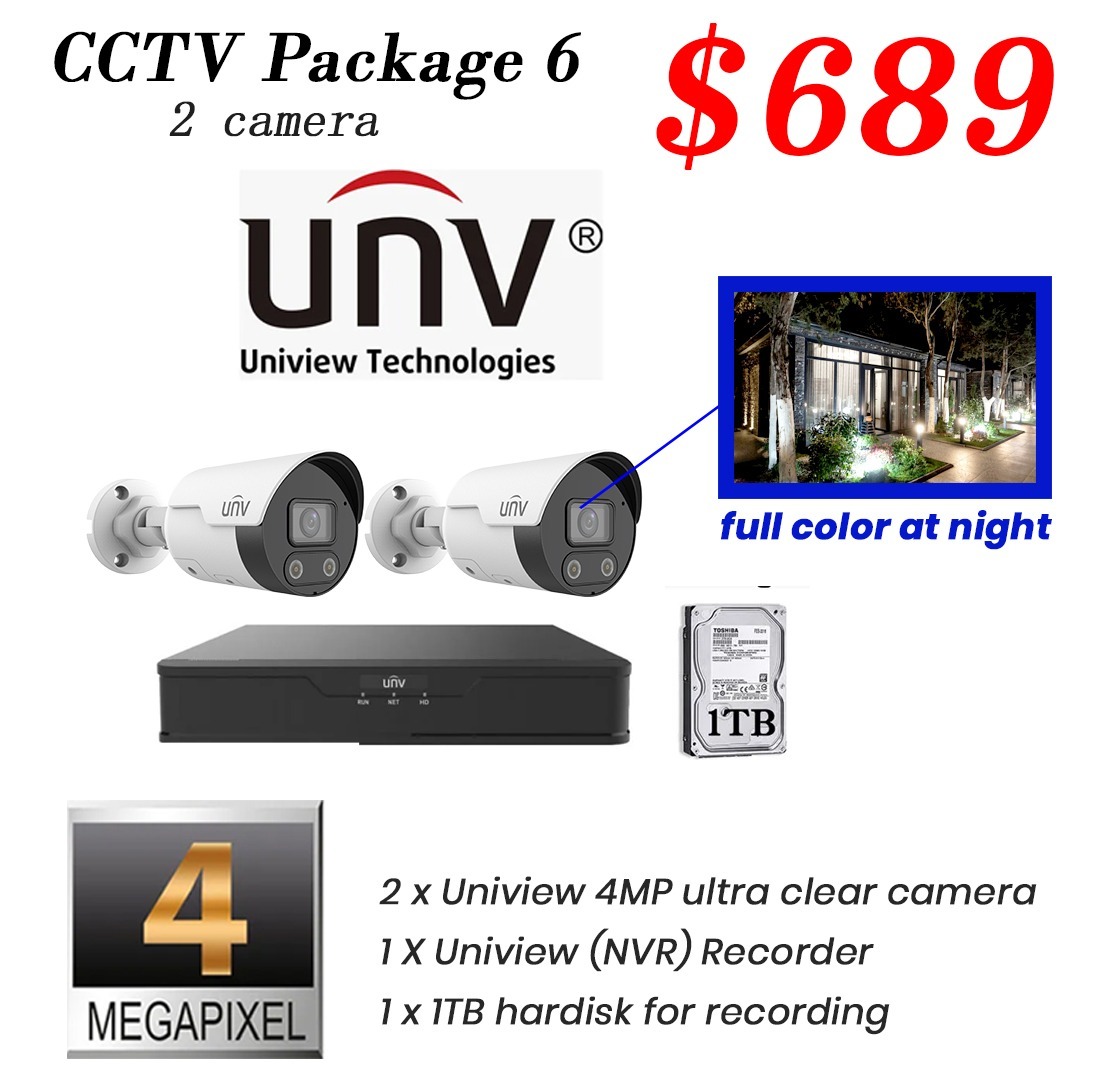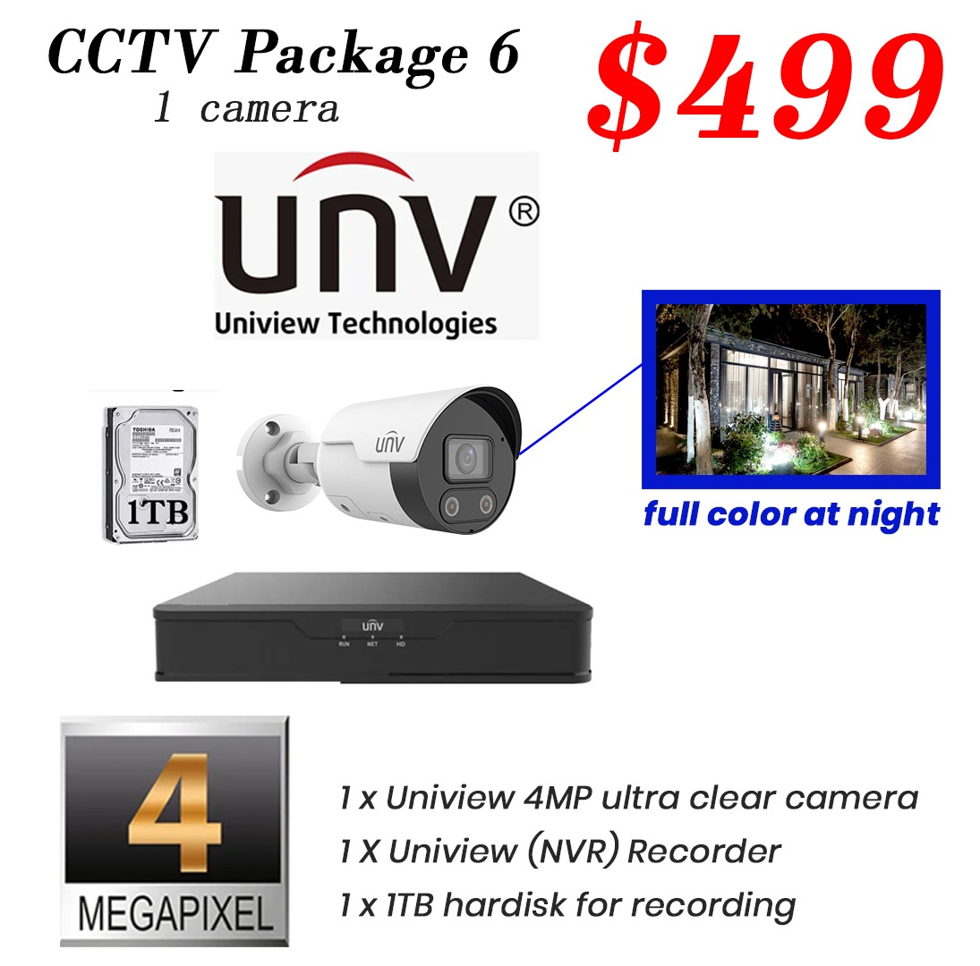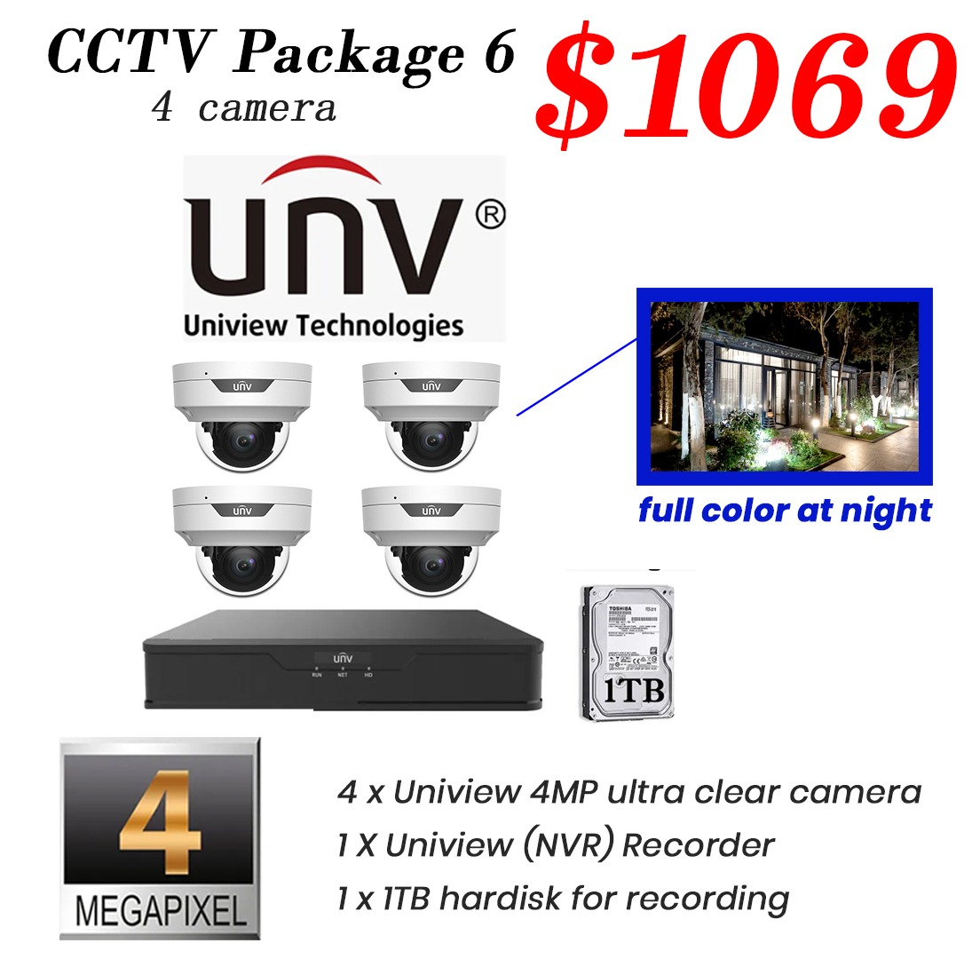 Package 6 - Uniview 4MP Color Hunter IP Camera CCTV