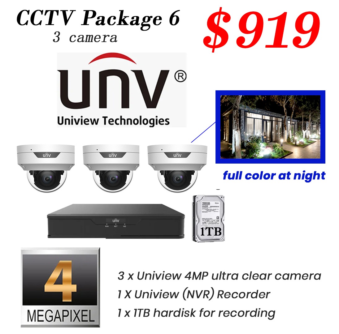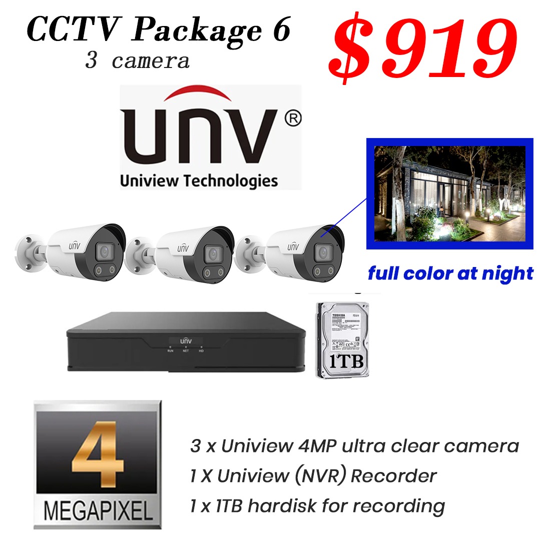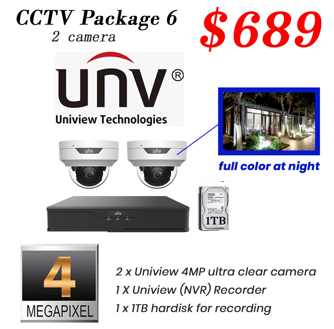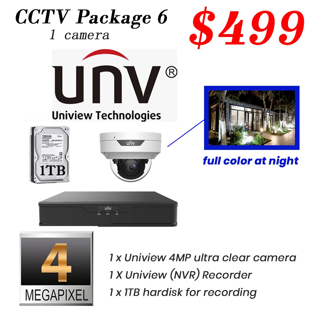 Package 6 - Uniview 4MP Color Hunter IP Camera CCTV